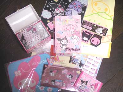 ■当日のおみやと入会記念品と配布物いっぱい。箱が凝ってる~2種類あるらしく、もう片方はクロミ様メイン箱。欲しすぎ。